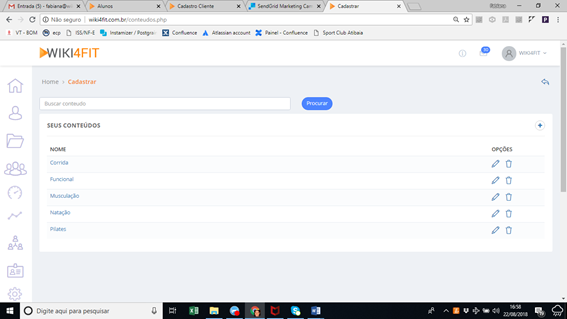 Para adicionar um novo conteúdo basta clicar no (ícone de mais), uma nova janela será aberta, você deve digitar o nome do novo conteúdo e clicar em salvar.